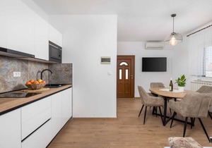 A simply furnished one-bedroom apartment located in Rovinj, just 5 minute walk away from the first beach, it's located on the ground floor and has everything for your need; equipped kitchen, living room with SAT TV, air conditioner, Wi-Fi access, king-size bed and one bathroom. The kitchen is equipped with microwave, stove, refrigerator, toaster and coffee machine. Guests can use the property’s terrace, garden and outdoor barbecue facilities. Private parking is provided in front of the property.