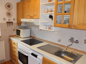 4-room semi-detached house 120 m2 on 2 levels. Practical furnishings: living/dining room 30 m2 with satellite TV (flat screen), radio. Exit to the garden. 1 room with 1 double bed. Kitchenette (oven, dishwasher, 4 ceramic glass hob hotplates, microwave, freezer, electric coffee machine). Bath/shower, bidet, sep. WC. Gas heating. Upper floor: walk-through room 30 m2, with sloping ceilings with 3 beds (82 cm, length 192 cm), 1 sofabed (150 cm, length 200 cm). 1 room with sloping ceilings with 1 bed (82 cm, length 192 cm), 1 double bed. Exit to the loggia. Sep. WC. Beautiful view of the countryside. Facilities: washing machine, baby cot. Please note: suitable for families. Non-smoking house. Maximum 2 pets/ dogs allowed. Fire extinguisher. One of the bedrooms on the upper floor leads to another bedroom with loggia.