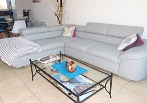 1 large living room/ living room of 65m2 with sofas, TV, DVD player, overlooking balcony sea view -