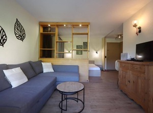 Surface area : about 36 m². 1st floor. Orientation : West. Living room with bed-settee, TV. Sleeping area with double bed. Kitchenette with oven, 2 induction cooking rings, fridge. Bathroom. Separated WC. Balcony. washing machine.