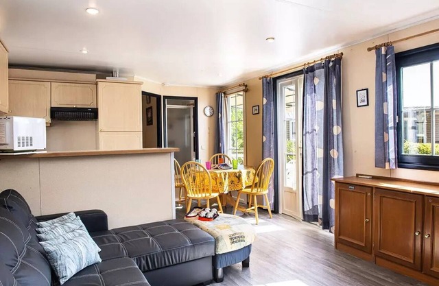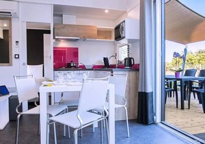 Details: Beach Access : 700 m Wi-Fi access : paid (see on-site rates) Playground for children : yes Children's animation : Mini-club Island Pirates, 5-12 years old (morning and afternoon, 4h/day) - in summer only, free Family animations : Family activities in July and August, during the day and in the evening. Sports animations : jogging, volleyball, tennis, ping pong, basketball Pets allowed : 35€/week/animal (max. 2/housing) Deposit (in supplement) : 300 Baby chair : From 0 to 2 years - 20€ /stay (to be specified when booking) Air conditioner Grocery store : From the end of June to September - grocery store with sale of bread on site. Laundromat : Wash : 6€/session - Dryer : 4€/session Bedding : Complete kit (bed, toilet and kitchen) : 22€ / person / week - change required every week, to be specified when booking. Crib : From 0 to 2 years : 20€ /stay (to be specified when booking) Final cleaning : Included Number of stars : 4 Car park : Included. 3€/night/additional car bowling Ping Pong : yes Swimming pool : Water space with basin of 700m2 (open from 27/04 until 30/09 according to weather conditions) partially heated, slide, waterfall and paddling pool - free deckchairs (within the limits of available stocks). Close trade : 5km Restaurant : on terrace or take-out - bar - open from June to mid-September Tourist tax (surcharge) : to be paid at current rate /day/person Multisports ground : yes Number of bedrooms : 3 Surface (m²) : 38