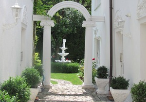 A romantic garden and courtyard with seating and a table is available to all guests.