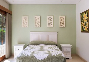 This is a Balinese style house, recently refurbished with comfortable sofas (indoors and out) a wonderful covered veranda for outdoor dining and relaxing, ethnic artwork, new linen, towels, flat screen TV, DVD player, wireless internet and a full kitchen.
