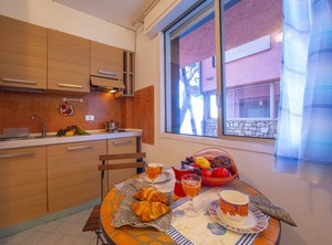 The apartment is on the -3rd floor basement of a modern residence overlooking the sea. Inside, the studio offers a cosy living room with double sofa bed, a flat screen TV and a kitchenette, with small dining table for 2. A full shower room completes the internal layout of this friendly apartment. Guests staying in the studio benefit from access to an on-site sea view reception.