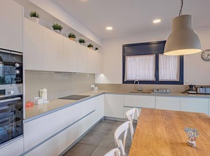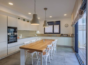 On the first floor we find 2 bedrooms (one of them with 2 single beds, one with a double bed and a bunk bed), both en-suite with integrated bathroom. Apart from that there is a second living room with a large solarium terrace, ideal to relax after a day at the beach.