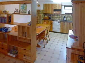 "Fricktalerhuus Apt.1", 3-room apartment 85 m2 on 2nd floor. Simple and cosy furnishings: living/dining room with open-hearth fireplace and satellite TV (flat screen), radio. Exit to the balcony. 1 double bedroom. 1 room with 2 x 2 bunk beds. Open kitchen (3 hot plates, oven, electric coffee machine, raclette grill, fondue Set (cheese)) with dining table. Shower/WC. Balcony. Beautiful view of the mountains, the countryside and the resort. Facilities: baby cot. Internet (WiFi, free). Parking at the house. Please note: non-smokers only. Maximum 1 pet/ dog allowed.