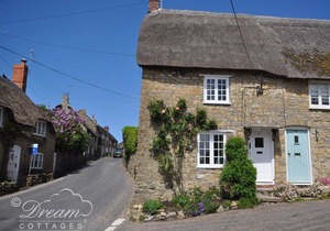 Dormouse Cottage is a charming cosy thatched cottage in Burton Bradstock, Dorset. The cottage has low ceiling stairs up to the first floor bedrooms, 1 x double, 1 x small single and a bathroom. The cosiness continues in the sitting room with small dining table and the cottage style kitchen. The cottage has a small enclosed patio garden with furniture. Dormouse Cottage is the ideal romantic retreat in the popular village of Burton Bradstock with village pubs and a village shop close to the Dorset coast.