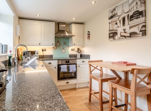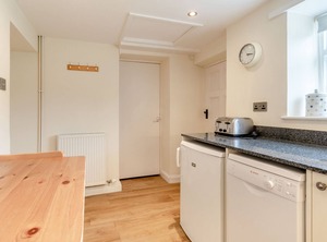 Amenities: Electric central heating with woodburning stove. Electric oven and hob, microwave, fridge, dishwasher, TV with Freeview, DVD, DAB radio and bluetooth speaker. WiFi. Fuel, power and starter pack for woodburning stove inc. in rent. Bed linen inc. in rent. Offroad parking for 1 car. Enclosed rear garden with herb garden, furniture and BBQ, shared front garden with lawn and shrubs. One well-behaved dog welcome. Sorry, no smoking. Pub 2 mins walk, shop 4 miles. Please note towels are not provided. Please Note: This property is for holiday purposes only, and doe not accept contractor bookings without prior agreement.
