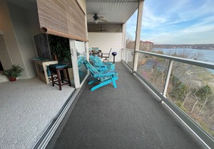 Enjoy the lake view with your morning coffee or evening drink from the screened deck! The view is spectacular no matter the time of day or season! The deck runs the length of the condo unit and has double sliding doors leading to the master bedroom and to the living room so you can bring the outside in!
