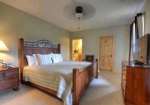 Just off the great room, one on each end of the home, you will find the two king master suites which each feature a flat screen TV and an attached full bath complete with its own amazing large tile rainfall shower.