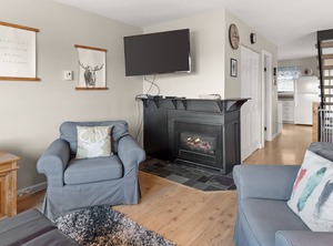 Enter the unit from the ground level into a living area perfect for the kids. Walk up the first flight of stairs to the living room, kitchen, and dining area. The living room is cozy with a gas fireplace perfect for a great day on the slopes. Enjoy the views of the Mad River valley from the outdoor balcony. On the second floor, you will find 3 bedrooms, Master, with a queen bed and 3/4 bath ensuite, the second bedroom with a queen and the third has a custom triple bunk and twin bed. Up the last set of stairs to a bedroom with a queen.