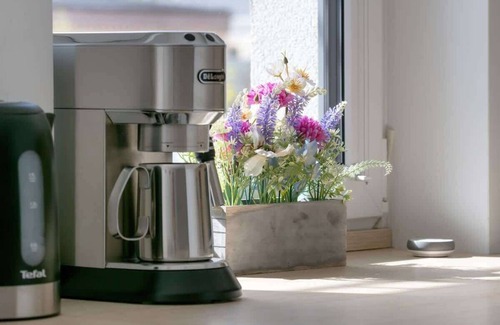 The apartment with a balcony is located on the 2nd floor of the building and is designed to accommodate 4 people. It is an ideal getaway option for a family or traveling friends. The highly functional 52 m² space offers a living room with a kitchenette, a bedroom and a bathroom with a bathtub. Equipped with a comfortable sofa, a projector with SMART function (access to the Netflix platform) and a bookshelf, the living area is the perfect place for rest and relaxation. In addition, there is a balcony with garden furniture where you can enjoy a sip of morning coffee. The bedroom not only has a very comfortable double bed and a spacious closet, but also a desk with a chair, so guests working remotely will be able to take care of business duties in comfort. Multimedia in the apartment includes access to high-speed free Wifi internet. Comprehensive furnishings with necessary kitchen and bathroom equipment and multimedia ensure a comfortable stay. A complimentary set of toiletries (soap, shampoo and shower gel), towels and linens are provided to facilitate the start of each stay. The interior is bright, modern and functionally designed, meeting all the needs of guests.