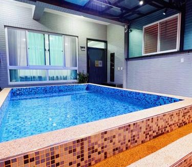 Just a 6-minute walk from Hengchun Old Twon South Gate and half a mile from Hengchun Old Town West Gate, 墾丁日日好適包棟旅店 features accommodations in Hengchun South Gate with barbecue facilities. The property is around 5.9 miles from Kenting Night Market, 6.9 miles from Maobitou Park, and 8 miles from Chuanfan Rock. There's a sun terrace and guests can use free Wifi and free private parking. The homestay consists of 5 separate bedrooms, 5 bathrooms with slippers and a hair dryer, and a living room. A flat-screen TV with cable channels is provided. The accommodation is non-smoking. In addition to a year-round outdoor pool, the homestay also provides kids pool. Sichongxi Hot Spring is 8.9 miles from 墾丁日日好適包棟旅店, while Eluanbi Lighthouse is 11 miles from the property. Kaohsiung International Airport is 57 miles away, and the property offers a paid airport shuttle service.