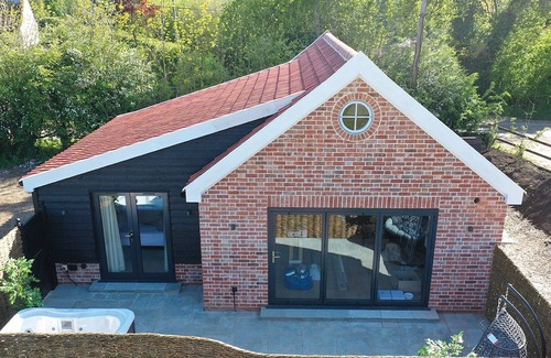Luxurious and well-appointed lodge. Comprising one double bedroom with French doors to the outside. En-suite with shower and bath with natural stone and marble. The lodge is built on one level with underfloor heating throughout. A well fitted luxury modern kitchen open plan lounge, with built in TV, sound bar and electric wood burner. Outside is a secluded patio, with a Jacuzzi hot tub, swing-seat and loungers all surrounded by willow fencing. No pets.. New for 2019, Meadow Lodges Woodbridge is part of our Autograph Lodge Holidays Collection. With a mixture of one and two bedroom lodges all with hot tubs it really elevates a high quality lodge park.