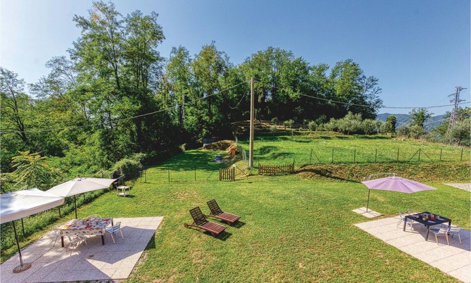 Holiday apartment in the countryside between Massa and Carrara, 320 mt asl, in a quiet position surrounded by woods. Large outdoor spaces in shared use for you to enjoy an alfresco meal or unwind in the summer evenings, with partial view over the sea and the marble quarries of Carrara; garden with table, chairs, barbecue and sun beds. Ideal accommodation for families and friends travelling together, without giving up their privacy, and for guests seeking a quiet stay between countryside and seaside. The surrounding woods offer many hiking routes, perfect for pleasant walks deep in nature. Tennis court and horse center at 8 Km. Don’t miss an excursion to see the marble quarries and the historical center of Carrara (3 Km), featuring the lovely Duomo and Palazzo del Medico. If you wish to spend your day at the seaside you may find the beaches and the clubs of the renowned Forte dei Marmi at only 18 Km. Distances: Massa 6 km, Lerici 26 km, Portovenere 48 km, Cinque Terre 49 km, Lucca 51 km, Pisa 54 km. Access through a short stretch of dirt road (30 mt), not suitable for sports cars. The apartment is located on the first floor. ITV881 in the same building. Please note that: Bed linen and towels are not included in the room rate. Guests can rent them at the property for an additional charge of EUR 10.00 per person or bring their own. Consumption costs are not included in the room rate and will be charged according to guest use within 3 weeks after check-out. - Free parking on site - Shared washing machine - Optional: Bedlinen incl towels - Cot: 1