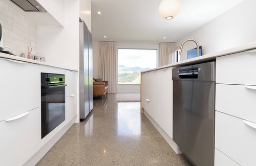 This spacious, modern home combines luxury and comfort, creating the ideal setting for relaxation and fun. The heart of the home is the stunning, fully equipped kitchen, complete with a large walk-in pantry. The open-plan living area invites you to unwind on leather couches while enjoying breathtaking views of the iconic Mt Karioi on one side. On the other side, step out onto a deck with comfortable seating and a BBQ, perfect for outdoor dining or simply enjoying the fresh air.