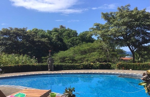 La Casita is a beautiful guest house that makes you feel at home away from home. It has AC, a refrigerator, a small electrical stove, as well as a fair sized closet. The bathroom is 'en suite' and has a spacious shower. This property is 100 steps from Playa Honda, a secluded cove with a white sand beach on the pacific ocean. The property is very private, it has a nice size pool to cool off in and it boasts a magnificent garden where monkeys stroll from tree to tree and humming birds feed.