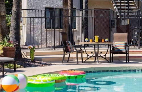 102 -Resort-Style Living | Luxe Suite, Poolside Lounge, Tennis & Outdoor Games has 1 Bedroom , 1 Bathroom, and max occupancy of 2 people. The minimum rental for this property is 1 nights, but this can change depending on the season you plan on staying. Previous guests have given good rated it, and VRBO labeled it a top-rated Apartment because of the excellent services rendered by the owner or manager of this Apartment, and has consistently provided great experiences for their guests. Most families or guests that use it recommend it to their friends and some of them are repeat guests. Apartment has a friendly neighborhood, and the New Papago Parkway has interesting places to visit. If you want to learn more about the Apartment in New Papago Parkway, such as places to visit and things to do nearby, you can check below to learn more.