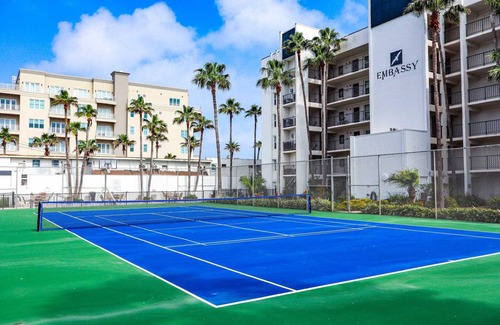 EMBASSY 402 - What a great beachfront opportunity to see South Padre Island's Gulf of Mexico. Great updated 2 bedroom/2 bath unit, sleeps 6 with views of the beach. Smaller complex with only 30 units. Close to entertainment district, restaurants and water activities. NO SPRING BREAKERS ALLOWED. Five night minium stay year round. Lots of things to do on the island, shopping, fishing, swimming, surfing, Sea Turtle Inc, South Padre Island Birding Nature & Alligator Sanctuary, Island Adventure Park, Gravity Adventure Park, The Stables, Coastal Studies Lab, and more! STR PERMIT #2023-0157