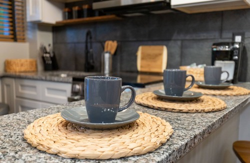 Downstairs you will find a great room that could almost be an efficiency apartment! This level does not have a door that seperates it from the upper floor, so parents don't need to worry about feeling disconnected from kids who want to hang out downstairs. Larger groups will enjoy having extra refrigerator space and a second stove and microwave in the downstairs kitchenette. In the great room, we have a pull out queen sofa and our unique stacked beds with a full bed and 2 twin beds that pull out from underneath, so no sleeping in a cramped bunk bed under someone else. Enjoy hundreds of arcade games, watch a movie on the large smart TV, or play a game of foosball by the electric fireplace. A woodland animal theme reading/toy nook under the stairs is a fun place to play a new game or read a book. A second bath is on this level, beautifully remodeled with live edge wood countertop and a luxurious walk in rainfall shower. This is a walkout basement level with windows and a sliding glass door that leads to a patio with a porch swing and hammock chairs.