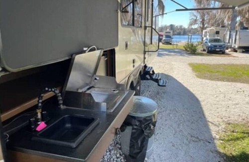 You will be located in Port Cove RV Park that is gated RV Park for total confidence of peace of mind. Spaces Kitchen-Dining and setting area with a Awning for outdoor relaxation, with table and chairs on site.