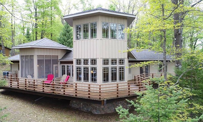 This may be one of the most unique and well built lake homes you will ever have the chance to stay in, Everyone that visits says the same thing WOW what a lake home! This home was originally built by an architect and no expense was spared. Amazing and uniquely designed specifically for this peninsula property. Listed fall of 2020- Hurry and book this one as it will be full quickly.