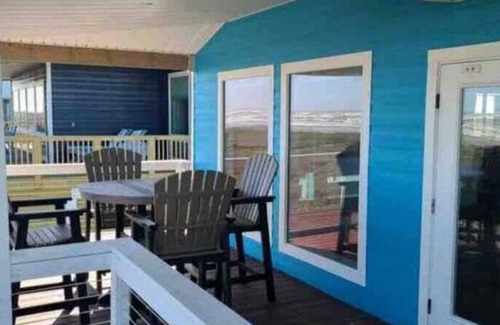 (Sleeps 18) Finally a beachfront house large enough for two families, with no beach traffic. Enjoy the waves from your back deck, as the sun rises every morning. From enjoying the beautifully finished home, including everything you could need, to showering off downstairs after a day on the beach, you’ll love to call this place, “Yours”! Here is the setup….There are two Master bedrooms with king beds and in suite bathrooms. Upstairs there are three bedrooms. Two of them have triple bunks and a queen, the third has two bunks that are fulls over queens. Two full bathrooms upstairs. So two couples can stay on the main level with privacy, and all the kids can be upstairs.