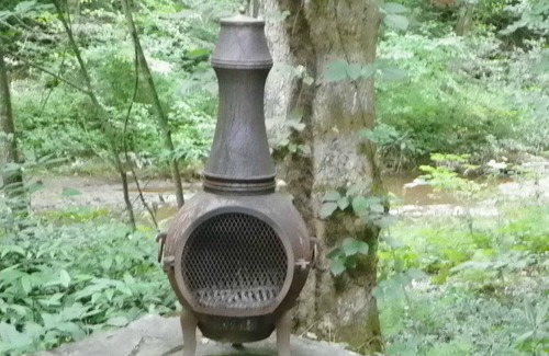 Romantic and private mountain cabin located just north of historic Dahlonega, on Cane Creek with 25 ft high waterfall, great room w/ massive stone fireplace, screened porch w/ rocking chairs overlooking Cane Creek, flagstone terrace within 10 ft of creek and flagstone walkway around cabin, 1950s kitchen with antique side board sink, refrigerator, gas stove, coffee maker, toaster, microwave, 1950s bathroom fixtures with lots of gas hot water, large walk-in tile shower, 90% efficient quiet gas furnace, easy unloading-park 15 ft to front door, located inside a gated facility staffed 24/7, just relax and sit by the fire or take a walk along the scenic mountain trails or take the "Georgia Wine Trail" to the many wineries nearby or enjoy a play or movie at the historic Holly Theater.
