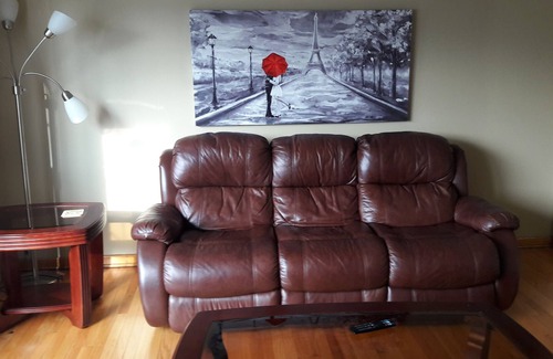 The bedroom has a18'' queen size mattress. Front room have couch, smart TV. Free internet (Pontiac)