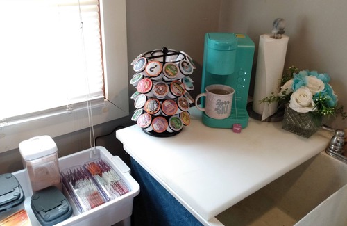 Wake up & enjoy watching nature while drinking a selection from a coffee/tea bar. Work or have fun with 100 Mbp internet, desk and generous outlets... Take a break with your best 4 legged buddy for afternoon walks at the state park. Or maybe you like to gulf (3 w/in 10 mil). Your suite stay is longer w/E mini freezer/fridge/microwave in a basic kitchenet. Ready to eat snacks and meals are an option with the provided basic supplies. Note: no full kitchen.
