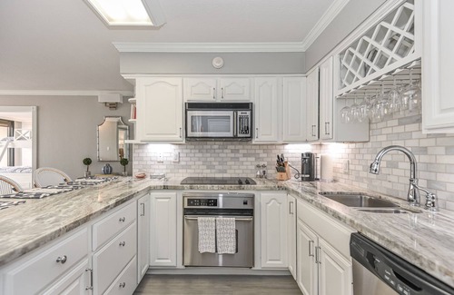NO PETS! Privately owned and managed Condo with all the bells and whistles, 2 Bedrooms, 2.5 Baths, Sleeps 8 very comfortably. Luxury bedding. Could sleep more, feel free to private message me on details. There is 1 King in the primary bedroom, Sofa sleeper in Living room, guest room has amazing built ins( see photos) 2 queens on bottom and 2 twins on top. HUGE new smart TV's in all rooms. FREE basic cable and WIFI.