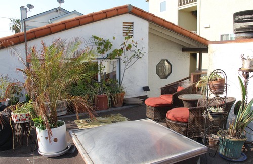 Feel at home in our 1924 cozy beach bungalow 1/2 block from the beach. There is a 600 sq ft private deck for you. The outdoor patio includes 80 yr old bouganvilla that creates a colorful overhang, sweet scenting plumerias, rose bushes and scrumptious night blooming jasmine. There is also an outdoor shower. The covered patio is a wonderful quiet retreat from a day in the sun and is an restful place to read and take a nap.