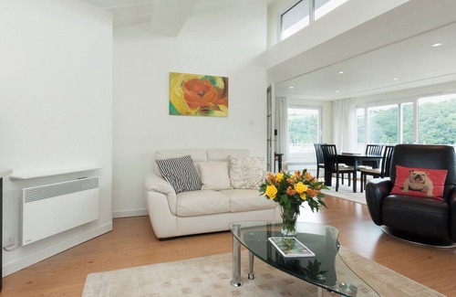Shower Room: Cubicle Shower, Heated Towel Rail, Toilet. Electric heating, electricity, bed linen, towels and Wi-Fi included. Rooftop terrace with garden furniture. Private parking for 1 cars. No smoking. VisitEngland 4 Star. Please note: No children under 10 years old.. A beautifully presented two bedroom, two bathroom, penthouse apartment with stunning River Dart and Britannia Royal Naval College views. It has the benefit of allocated parking for one medium car. It is located in the very heart of Dartmouth and is just a few minutes level walk from the quay and the many restaurants and shops Dartmouth has to offer.