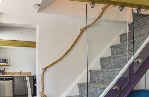 Chuckle Cottage in Braunton is the ideal base for exploring the North Devon Coast, with sandy beaches, the Tarka Trail, golf, surfing and the South West Coastal Path nearby, there is so much to discover.. 2 steps to entrance.