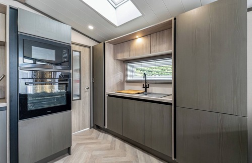 A stylish and contemporary two bedroom holiday home perfect for couples or families. Tastefully furnished main bedroom with king-size bed and en suite shower room, with a second bedroom that features two full size single beds. Large family shower room. Bright, spacious open-plan living space featuring comfortable soft furnishings and a smart TV. Well-equipped kitchen/dining area with a great range of appliances. Private outdoor decking area with high quality furniture to make the most of the peaceful and picturesque surroundings. Please Note: This accommodation is not suitable for individuals with limited mobility, No Pets.