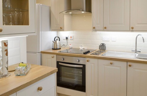 Kitchen: With electric oven, electric hob, microwave, fridge/freezer and dishwasher.
