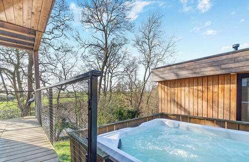 A superbly designed and laid-out contemporary lodge with modern design off-setting the surrounding countryside. Open plan central living lounge with kitchen diner with panoramic views across Teesdale. Two double bedrooms one with en suite showers room and separate shower room and equally stunning views. Generous deck area with quality outdoor furniture and outdoor hot tub.. Whispering Waters is a boutique collection of unique lodges set above the tree-lined River Tees in Lower Teesdale; England’s last wilderness.