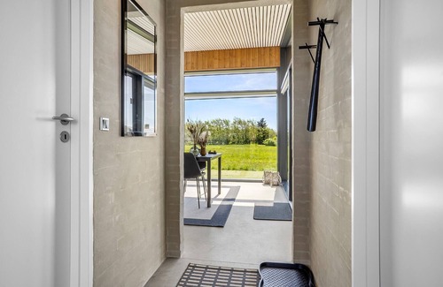 This vacation home is situated overlooking the Limfjord. Designed by an architect, the house is built from selected materials typical of the region. Particularly noteworthy are the wide window sections and the open roof ridge, both factors that favor the fantastic incidence of light.