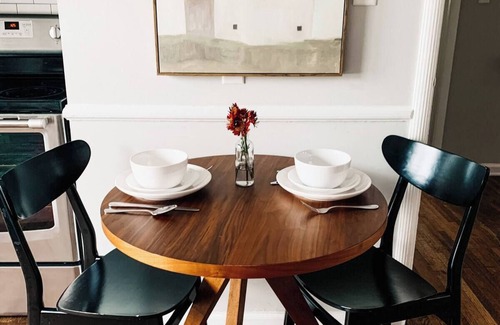 This 2-bedroom apartment is perfect for your escape to Evansville. Nestled in a peaceful neighborhood, this quaint retreat offers 2 queen beds and a cozy living room with a sofa bed. Guests can enjoy the fabulous amenities like heating, AC, iron, and a hairdryer. Experience the magic of Evansville at our apartment.