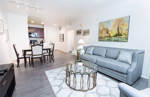This house requires a minimum 31-day stay. For stays over 31 days, utilities are not included. BASICS. This luxurious 2 bedroom/2 bathroom condominium offers a Stellar Living experience in the heart of Irvine! Beautifully remodeled throughout, features hardwood flooring in the common area, carpet for bedrooms, upgraded kitchen with granite counter tops, energy saving appliances and wood cabinetry. Exquisitely furnished throughout with choice furnitures and designer rugs. Two bedrooms furnished with cozy Queen size beds. Full scale bathroom with matching cabinetry as kitchen. The entire home is bright and cheerful. One assigned indoor parking space with access to elevator completes the convenience list. About Avenue One Complex. Upscale amenities make Avenue One ideal choice for busy professionals and families who enjoy the finer things in life. Granite slab counter tops, elegant ceramic tile in each bathroom and energy-efficient appliances, including four-burner slide-in ranges and Delta pull-out faucets, make each unit the epitome of luxury living. This friendly community, which spans six acres, is nestled against the San Joaquin Wildlife Preserve and brings the serenity of nature close to home. Avenue One is also home to a junior Olympic-sized swimming pool and a relaxing whirlpool spa; a luxuriously appointed sun deck, a putting green, and a cozy outdoor fireplace make this community the perfect place to unwind after a long day. Because it also features a fun-filled tot lot, an executive business center, and a state-of-the-art fitness center, Avenue One has something for everyone to enjoy.Access to community club house with many leisure activities. Avenue One Amenities includes: Top of the line 24h Cardio fitness studio with individual TVs. Scheduled fitness classes for all exercise needs. Swimming Pool. Indoor basketball court, shuffleboard, and even a putting green! Business center and conference room for residents' needs. Enjoy the media room and plasma screen, or play billiards! Picnic area with BBQ Grills for added enjoyment! Guest Access. - Gated Upscale Condominium Complex meticulously upkeep by housekeeping staff. - Clean, Fully Furnished and Decorated Apartment with balcony Located in Irvine. - Remodeled Kitchen Equipped with Granite Counter Tops. - 2 Bedroom Condominium with Queen size beds and One Sofa Bed. - Custom Flooring, Natural Lighting and Designer Rugs Throughout The Home. - 2 Bathrooms for Your Convenience. - Large flat screen TV in the living room. - High-speed internet, Wifi access, and YouTube TV all in place. - 1 Assigned parking spot in the building with elevator access. - Washer and Dryer. LOCATION. NEIGHBORHOOD. At Avenue One, it's All About Location. The corner of Jamboree Road and Dupont Drive is the perfect place to call home; located in the same block facing South, you will find The Plaza Irvine that house Villa Market Convenience Store, The House of Huschka - a homegood store, and many dining option such as Avocado Cafe, Qin West Noodle, Dosirak Company - Korean Food, Phan 55 - Vietnamese Bistro and Bar. Across the street is Jamboree Promenade, you can find more options such as Kiwami Sushi, Oishi Shabu Shabu, Subway, Momo's Grill and Hookah and even a Yoga Studio. GETTING AROUND. Avenue One is just steps from public transit and minutes from some of Irvine's finest shopping and dining establishments. A half-dozen golf clubs and courses are just a short drive out, and commuters love its close proximity to I-405. The upscale South Coast Plaza Shopping and Restaurants is Less than 5 miles away. While Irvine Spectrum Center, one of SoCal's most popular entertainment and shopping destinations and The Famous for its boats filled-harbor Coastal City Newport Beach is within 10 miles away. This lovely condominium is so close to John Wayne Airport, there is no need to get on the highway. The 405 is a minute or two and is easily accessible via the 5 south, or the 55 south. No matter where you start, Irv Houzlet publishes listings on Vrbo; which in turn, allows tenants to instantly rent seasonal rentals. Houzlet’s properties are managed by licensed real estate agents. Although the property is an instant rental, it’s possible there can be another pending application. If the home is not available, we can offer you another suitable option or you can cancel for free.