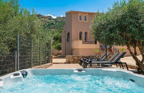 The 2-bedroom Nature House with a private outdoor Jacuzzi is located in Nerokourou village, 5 km away from the town of Chania. The location of the house, which is surrounded by olive groves, offers great mountain views and relaxation enjoying the peace and quiet of the Mediterranean nature, while the town center is a 10 minute drive away by car.