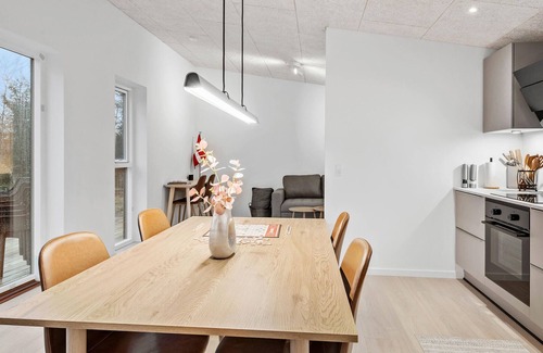 Experience a special kind of time out in your stylish holiday home in Råsted, which offers you everything you need for a relaxing holiday in the middle of an idyllic landscape. Enjoy the harmony of comfort and nature in an environment that invites you to relax. The house impresses with its modern, minimalist furnishings. Large windows provide plenty of light and a marvellous view of the landscape. Relax in the cosy living area or prepare your favourite dishes in the kitchen. The open-plan dining area offers space for socialising in the evenings, whether over board games or a shared dinner. The clear, Scandinavian aesthetics create a warm, inviting ambience.