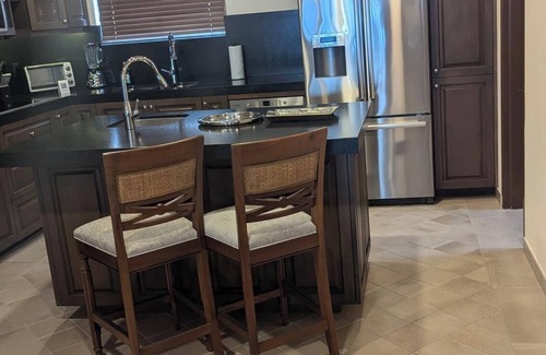 Discover the beauty of Danzante Bay from this large 2-bedroom resort. With 2 bedrooms with private bath and a king bed in each bedroom, Each suite has AC, WiFi, and televisions in every room. There is garden bathtub in the master bedroom with a view of the bay from the tub. Enjoy a private hot-tub, dining tables, and lounging furniture on the large decks. There are large living areas and large kitchens with all the necessary items for cooking and relaxing. There are six different pools on the property in the shape of a turtle. And a pool side bar with servers to bring you what ever you request. The bay is also an excellent place for swimming and relaxing with a small bar on the beach. You will also find 3 different restaurants to dine at and a little market. There is a spa and massage facility, and a children's play area. We have done several of the onsite tours. Snorkeling is a favorite and one of the best chances to see a pod of dolphins that swim up to the tour boats and play. We have even seen a sperm whale and followed him. Another tour is ATV adventures and you can rent a car at the facility to go wander. There is a beautiful, world renown, TPC golf course with a signature hole (17) that overlooks the Gulf. This is a beautiful property and we go every year. They are still progressing the property to add a theater, a grocery store and some other amenities. The location is secluded and it is a great place to decompress and relax. For more pictures you can go to Villa Del Palmer, Danzante Bay, Loreto Mexico