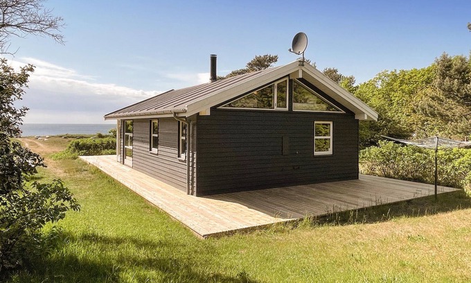 Beautiful wooden house with wonderful sea view in a dreamlike and undisturbed location on a natural plot, 200 m from the nearest beach, 3 km from Hasle and 7 km from Rønne.