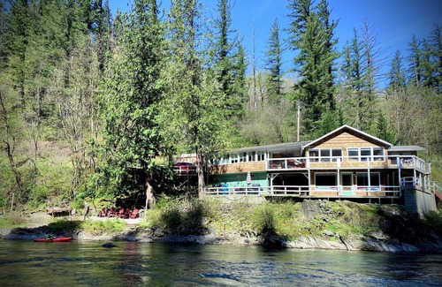 During the summer months when the river calms we provide an assortment of river rafts to enjoy the 500 ft of river frontage. There are numerous fishing holes and salmon spawning grounds just above the rapids.
