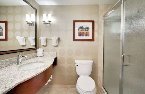 An excellent option for both business and leisure travelers, the 1 King Bed Junior Suite With Sofabed features a convenient location and 412 square feet of well-appointed space. Prepare a freshly brewed beverage with the Keurig coffee machine before enjoying your favorite movie on the 43" flat-screen TV. In the evening, the private bedroom is highlighted by a deluxe, King-size bed—perfect for getting some rest during a layover. Experience the best of Milwaukee during your stay at the hotel, conveniently situated between downtown Milwaukee and General Mitchell International Airport. Traveling to the hotel is incredibly easy thanks to complimentary on-demand shuttles services to and from the airport. Keep up your workout routine during your trip with a visit to the fully-equipped fitness center or a dip in the indoor pool. For ultimate relaxation, melt away tired muscles with a soak in the whirlpool and then head to the patio and enjoy the surrounding views. Stop by The Garden Grille & Bar and enjoy a variety of breakfast, lunch, and dinner options, as well as craft drinks.