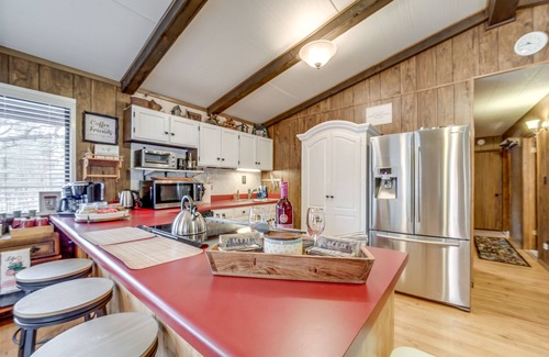 Experience the beauty of Arizona’s outdoors at this peaceful 3-bedroom, 2-bath Happy Jack vacation rental on one wooded acre! Designed with families in mind, this spacious cabin boasts a gourmet kitchen, 3 Smart TVs, a garage game room, and a lovely outdoor space. When you’re not enjoying these perks, explore miles of trails in Coconino National Forest or enjoy boating on C.C. Cragin Reservoir. After active days, sip some wine at the outdoor bar or roast s’mores over the wood-burning fire pit.