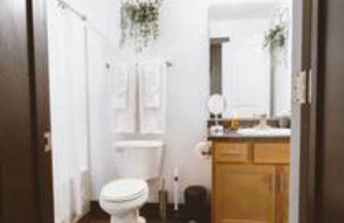 In each bedroom you will find King Beds with super comfortable mattresses, dressers, luggage holders, and tasteful décor. Additionally in each bedroom are soft and luxurious bath robes. The first bathroom is accessed by the hallway, the second bathroom is on-suite. Both bathrooms come fully equipped with towels, soap, shampoo, conditioner, and a hair dryer. Washer and Dryer included in hallway as well as iron and ironing board.