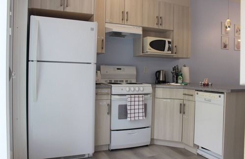 2 Queen beds, and a Queen sofa-bed for 6 people sleep, Luxury down filled duvet and memory foam bed mattress makes an exceptional sleeping experience. A fully equipped kitchen with adjacent BBQ area in the backyard facing a quiet treed space, in-suite laundry, Free parking, Wifi, and Netflix.