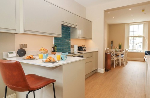 Amenities: Gas central heating. Electric oven, induction hob, microwave, fridge, freezer, dishwasher. Smart TV, WiFi. Fuel and power inc. in rent. Bed linen and towels inc. in rent. Highchair and travel cot available upon request. Roadside parking available for 2 hours during the peak months (and all day from October to April) and public car parks nearby. One well-behaved pet welcome. Sorry, no smoking. Shop, pub, and beach 0.1 miles. Note: This property is suitable for 7 adults or 6 adults and 2 children under the age of 12. Note: Two steps down to bathroom on first floor. Note: Third-floor bedroom is accessed via open-tread and narrow stairs and may not be suitable for those with limited mobility or children. Note: Staircase up to property. Note: Shared entrance to property. Note: If a highchair or travel cot is required please request at the time of booking. If you would like the property decorating for Christmas please let us know